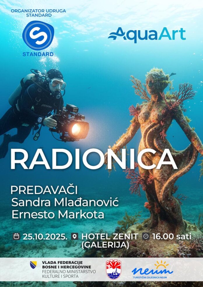 Radionica akvarela i podvodne fotografije održati će se sutra 25. 10. 2025. (subota) u 16:00 sati, Galerija (iznad recepcije), Hotel Zenit – Neum.