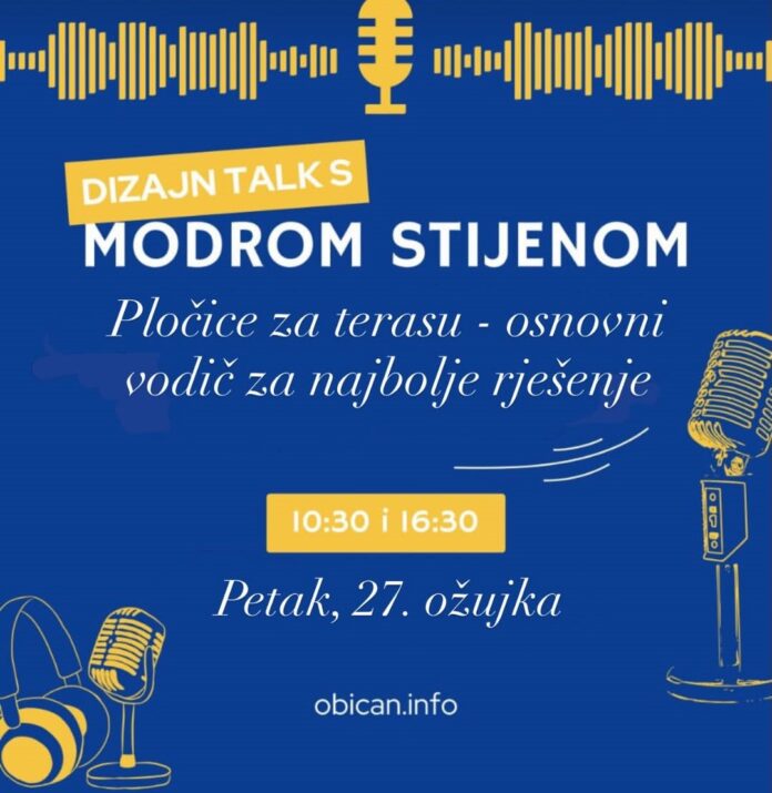 U programu Običnog radija emitirana je nova epizoda emisije „Dizajn talk s Modrom Stijenom“, a ovoga puta razgovarali smo o jednom od najvažnijih elemenata svakog vanjskog prostora – pločicama za terasu.