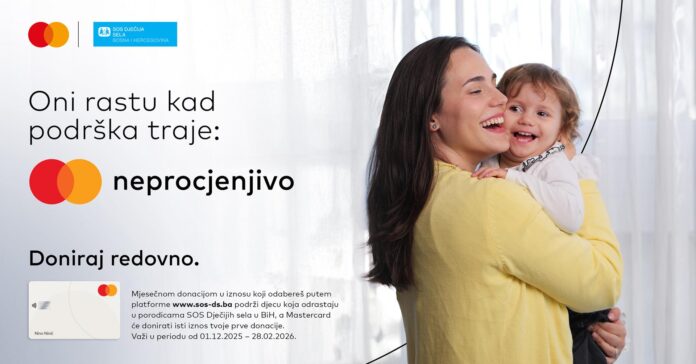 SOS Dječija sela u BiH i kompanija Mastercard tradicionalno i ovog decembra pokreću zajedničku kampanju „Oni rastu kad podrška traje. Neprocjenjivo.“, s ciljem da građane podstaknu na dugoročno pružanje podrške potrebne za poticajan rast djece i mladih. A odrastanje bi za svako dijete trebalo značiti sigurnost, ljubav, rutinu i prisutnost odrasle osobe koja vjeruje u njega. Upravo ove vrijednosti zahvaljujući podršci posvećenih donatora svakodnevno žive djeca i mladi koja odrastaju u brizi i podršci SOS Dječijih sela u BiH.