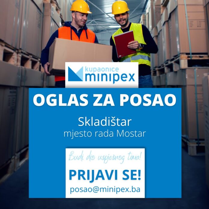 Tvrtka Minipex iz Mostara nastavlja s razvojem poslovanja i širenjem svog tima te je raspisala natječaj za prijem novih djelatnika na radno mjesto skladišnog djelatnika. Mjesto rada je Mostar, a prilika je otvorena za sve kandidate koji su spremni pridonijeti dinamičnom i profesionalnom radnom okruženju.