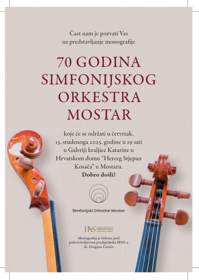 Kroz ovu monografiju slavimo 70 godina predanog rada, glazbene strasti i doprinosa kulturi ne samo Grada Mostara nego i cijele Bosne i Hercegovine.