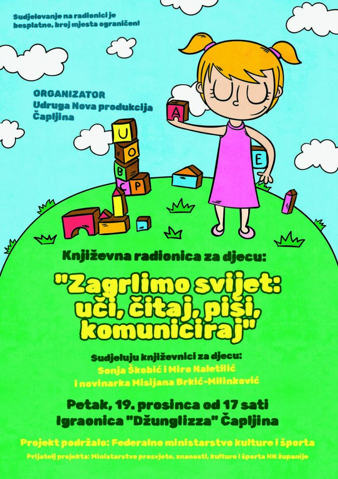 Ovoga petka, 19. prosinca od 17 sati, u igraonici “Džunglizza” u Čapljini bit će priređen zanimljiv program – Književna radionica za djecu: “Zagrlimo svijet: uči, čitaj, piši, komuniciraj”.
