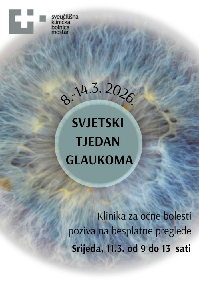 Klinika za očne bolesti Sveučilišne kliničke bolnice Mostar po jedanaesti put će sudjelovati u Svjetskom tjednu glaukoma koji se obilježava od 8. do 14. ožujka 2026. godine.
