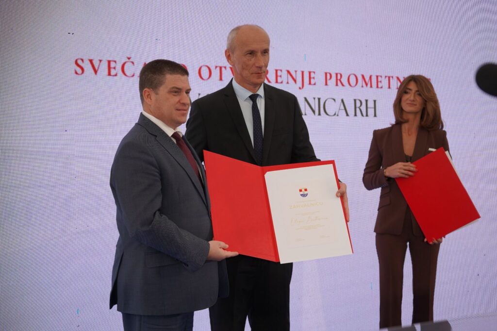 Općina Ravno tom je prigodom dodijelila posebna priznanja za izniman doprinos realizaciji projekta, ministrici Andrijani Katić za potporu strateškim infrastrukturnim projektima te ministru Olegu Butkovićuza osobni angažman u povezivanju dviju država. Nakon blagoslova svećenika, svečanim činom presijecanja vrpce službeno je otvorena nova prometnica Zavala – Granica Republike Hrvatske. Zaključeno je kako ova cesta predstavlja važan iskorak u povezivanju ljudi, prostora i budućnosti, ističući ključnu ulogu prometne povezanosti kao temelja gospodarskog i društvenog razvoja.