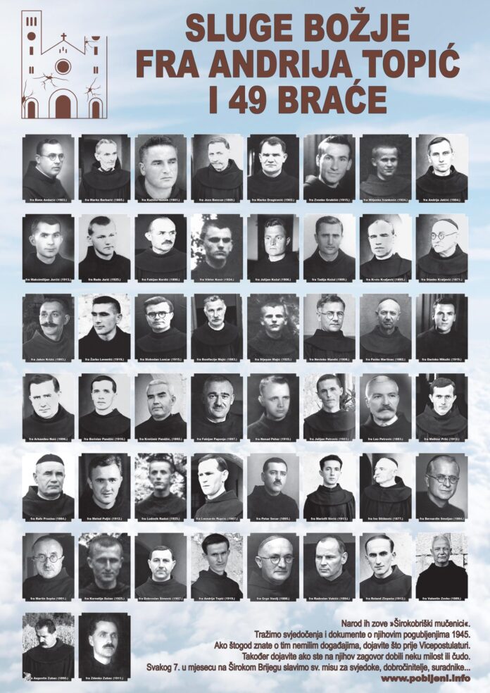 Na Širokom Brijegu će se od 1. do 7. veljače održati »Dani pobijenih hercegovačkih franjevaca«, spomen-program koji se priređuje u povodu 81. obljetnice jugokomunističkog ubojstva hercegovačkih franjevaca i brojnih vjernika tijekom Drugoga svjetskog rata i poraća. Program se održava u organizaciji Vicepostulature postupka mučeništva »Sluge Božje fra Andrija Topić i 49 braće«, na čelu s vicepostulatorom fra Miljenkom Stojićem.