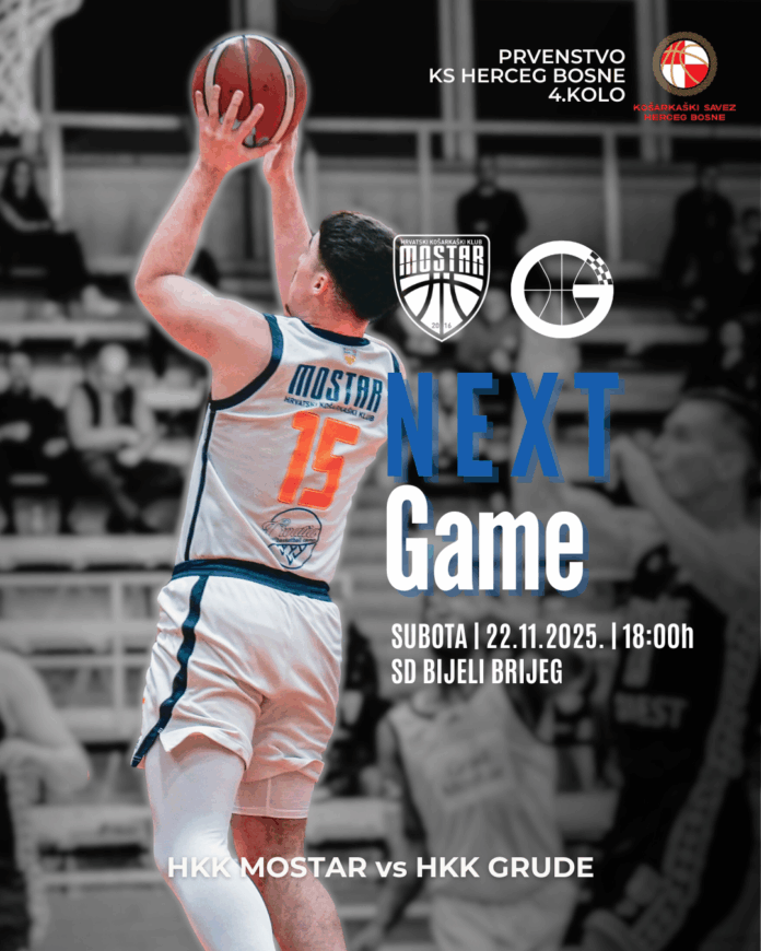 Nakon poraza u prošlom kolu na gostovanju kod ekipe Rame, košarkaši HKK Mostar ovog vikenda vraćaju se na domaći parket gdje će ugostiti momčad HKK Grude. Utakmica 4. kola Prvenstva KS Herceg Bosne igra se u subotu, 22. studenoga 2025. godine, s početkom u 18 sati u Sportskoj dvorani Bijeli Brijeg.