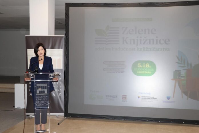 Prva međunarodna konferencija ”Zelene knjižnice – održiva budućnost knjižničarstva”, otpočela je danas s radom u Galeriji kraljice Katarine, Hrvatski dom herceg Stjepan Kosača, a pozdravnim ju je izlaganjem službeno otvorila predsjednica Vlade Hercegovačko-neretvanske županije Marija Buhač.
