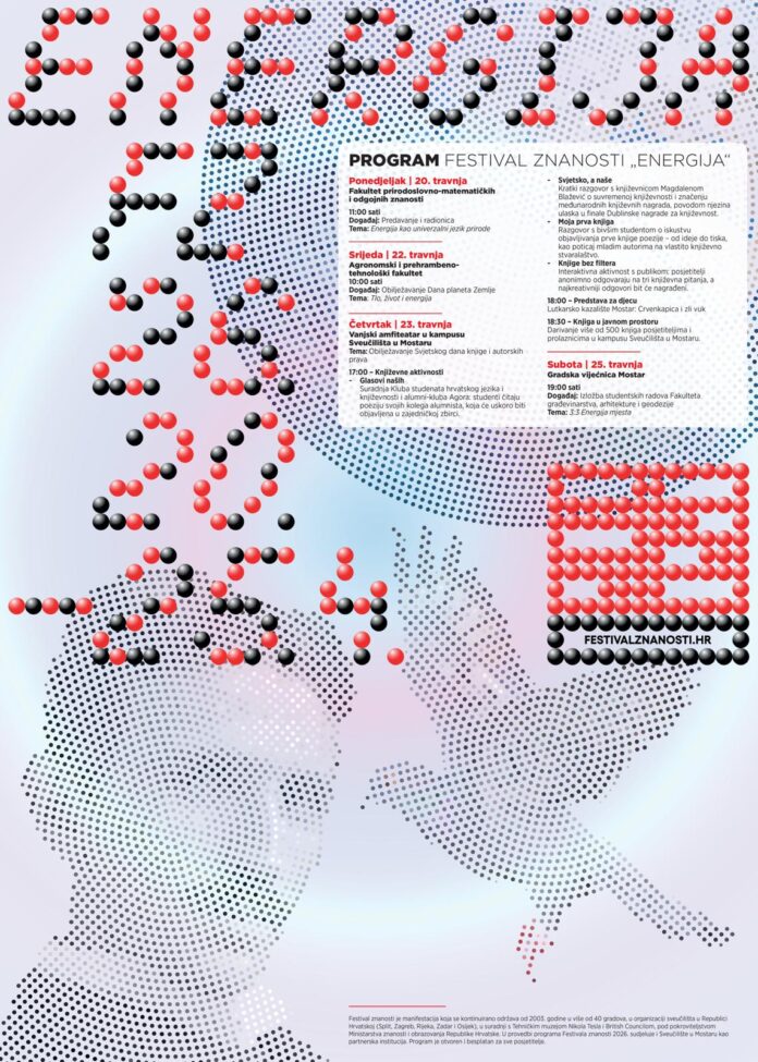 Sveučilište u Mostaru ove godine po prvi put sudjeluje kao partnerska institucija u međunarodnoj manifestaciji Festival znanosti, koja se od 20. do 25. travnja 2026. održava pod temom „Energija“ u više od 40 gradova.